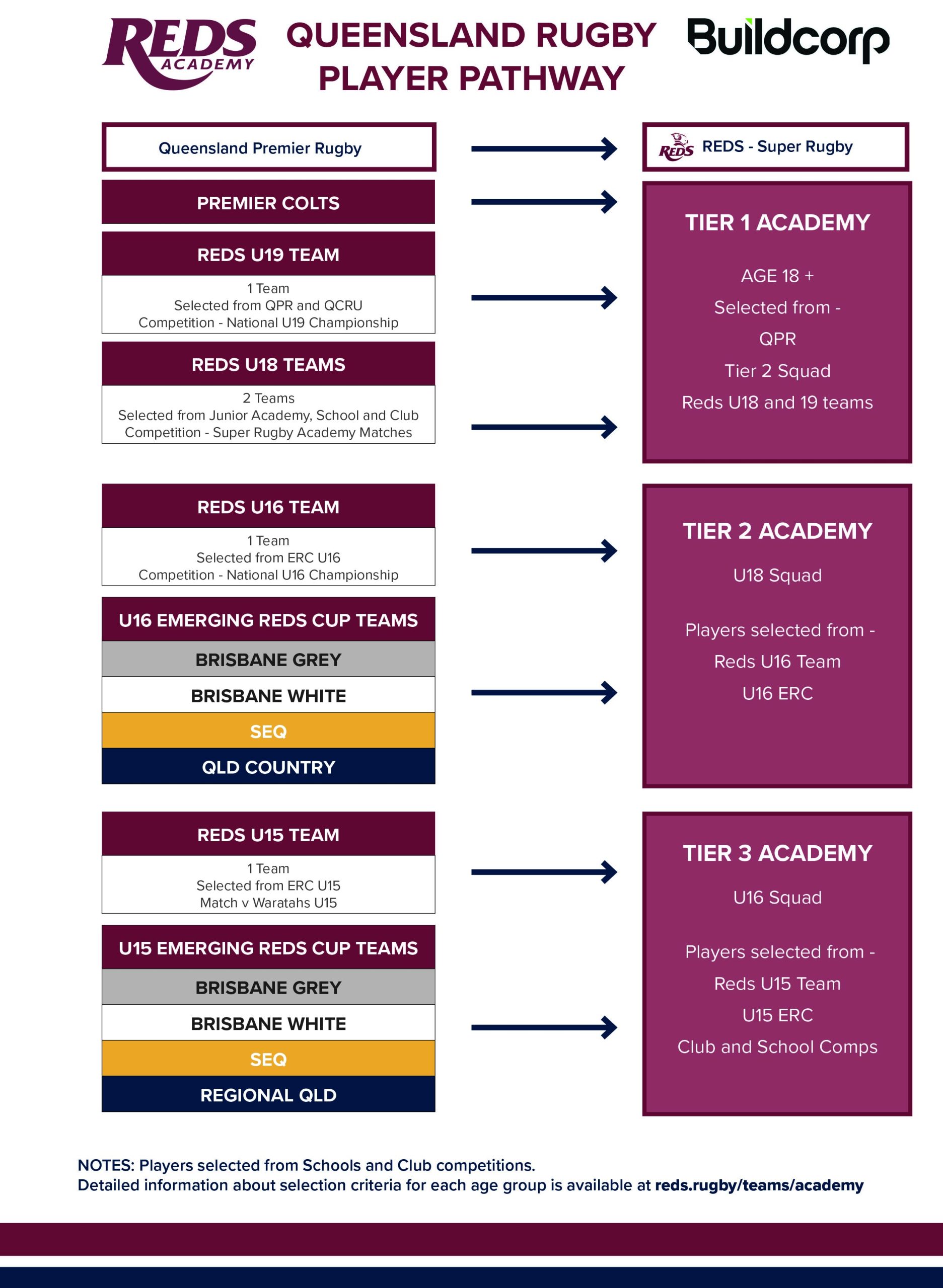 | Tier 1 Academy | U18+ (older youth) | More advanced: preparing players for entry into the Reds Super Rugby squad. Higher coaching intensity, more integration with senior players. |